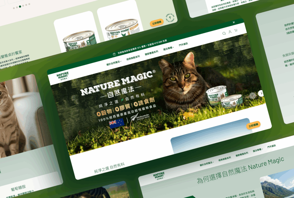 Nature Magic 自然魔法是一個以高端市場為核心的寵物食品品牌。本專案聚焦於其 D2C 線上通路的成長重構,從網站體驗、SEO 架構到數位廣告策略,協助品牌建立一套可支援曝光、轉換與長期成長 的數位基礎。